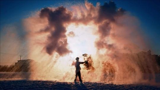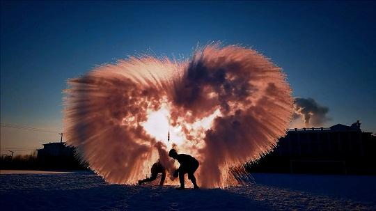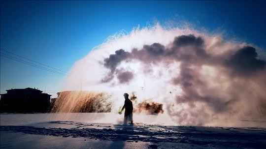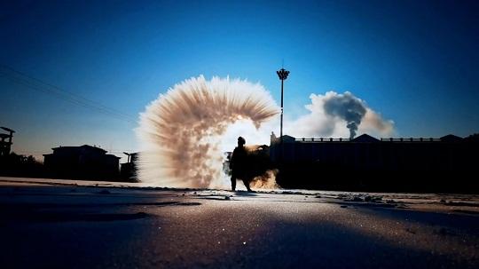 本報訊 記者韓瀟 通訊員陳小鵬 朱韜 王健州 近日,黑龍江地區(qū)大幅度降溫,伊春市最低溫度更是達到零下35℃。武警黑龍江總隊伊春支隊在訓練之余開展特色文化活動“潑水成冰”,讓官兵感受冰雪文化的樂趣。低溫下,潑灑出的水和熱氣被瞬間凝結成冰、成霜、成凌,層次分明地在空中擴散成煙花一般的絢爛,形成一幅藍天、白雪、白霧交織在一起的絕美畫卷。