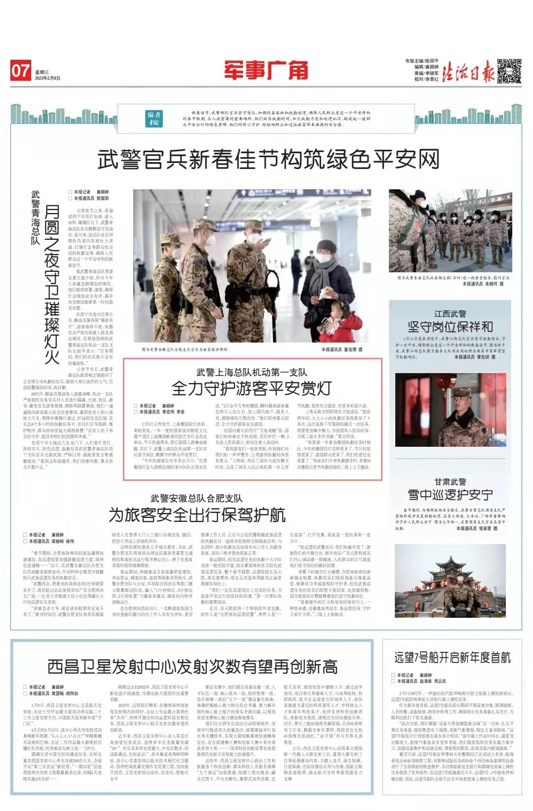 “和我第一年參加豫園執(zhí)勤任務(wù)時(shí)相比,今年的豫園花燈花樣更多了,節(jié)日的氛圍更濃了,游園群眾更多了,我們的責(zé)任也更重了。”和戰(zhàn)友們分享執(zhí)勤感受時(shí),有著10次豫園元宵節(jié)執(zhí)勤經(jīng)驗(yàn)的二級上士王健說。