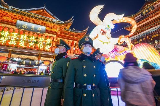 2月5日元宵佳節(jié),上海豫園張燈結(jié)彩、美輪美奐,一年一度的國家級非物質(zhì)文化遺產(chǎn)項(xiàng)目上海豫園新春民俗藝術(shù)燈會在此舉辦。節(jié)日恰逢周末,賞燈游園人群摩肩接踵。花燈下,武警上??傟?duì)機(jī)動第一支隊(duì)官兵堅(jiān)守崗位,默默守護(hù)群眾平安賞燈。