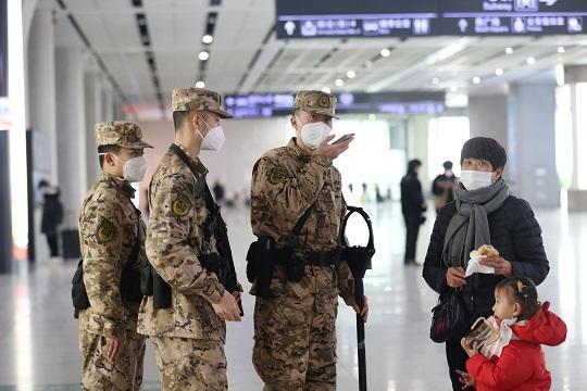 圖為武警安徽總隊(duì)合肥支隊(duì)官兵為旅客提供幫助。本報通訊員 董浩朋 攝