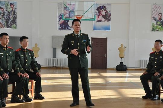 圖為武警部隊理論服務分隊成員、江蘇海警局執(zhí)法部偵察科科長王志國為武警吉林總隊白山支隊官兵宣講理論知識。徐笠桓 攝