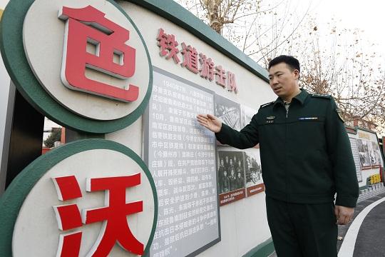 圖為武警山東總隊棗莊支隊組織紀檢股干事李命命學習支隊軍史長廊陳展。曹正寶 攝