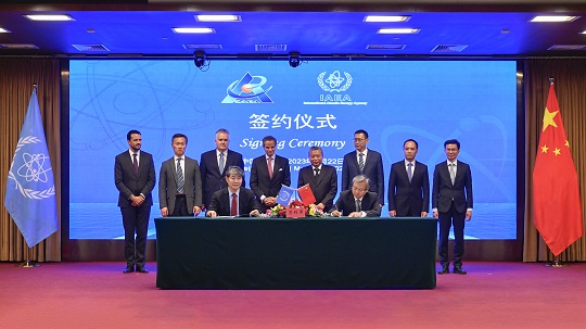 會見前,張克儉與格羅西簽署了《中國國家原子能機構與國際原子能機構關于小型模塊化反應堆和核電基礎設施開發(fā)領域合作實際安排》,并共同見證國家原子能機構、中核集團、中國科學院合肥物質(zhì)科學研究院、中國原子能科學研究院等與IAEA簽署多項合作文件,內(nèi)容涉及核能應對氣候變化、核技術診斷治療癌癥、核數(shù)據(jù)科學與核燃料循環(huán)、涉核新聞傳播與公眾溝通等多個領域。國家原子能機構還向IAEA交付了一批由中方企業(yè)捐贈的核安保專業(yè)設備,以及38項由中方翻譯完成的IAEA核安全標準和核安保導則。