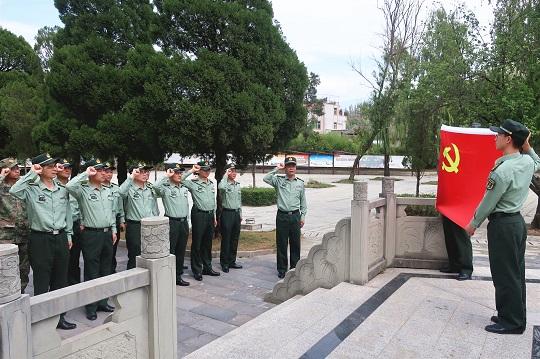 在丁佑君烈士陵園,“我宣誓,我志愿加入中國共產(chǎn)黨,擁護(hù)黨的綱領(lǐng),遵守黨的章程……”全體黨員在紀(jì)念碑前整齊列隊(duì),面對黨旗舉起右拳,莊嚴(yán)宣誓。