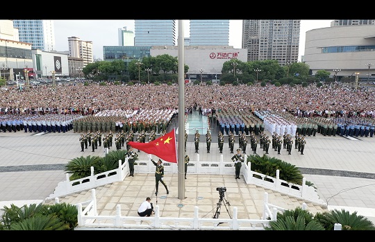 圖為8月1日上午,全軍院校“強軍杯”系列比賽集中交流賽560余名官兵與南昌市相關(guān)代表集合在南昌八一廣場參加升旗儀式。劉宇龍 攝
