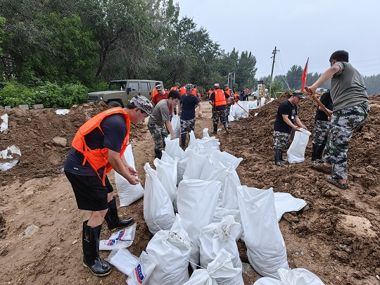 與此同時,武警黑龍江總隊(duì)哈爾濱支隊(duì)200余名官兵連夜奮戰(zhàn)9小時,在螞蟻河周邊壘筑沙袋2.8萬余個,筑起1.3米高阻隔沙墻600余延長米,保證了當(dāng)?shù)厝嗣袢罕娚?cái)產(chǎn)安全。8月4日10時,全體參戰(zhàn)官兵轉(zhuǎn)戰(zhàn)螞蟻河西側(cè)綏滿公路一線,進(jìn)行1000余米的加固堤壩任務(wù),防止河水漫堤。
