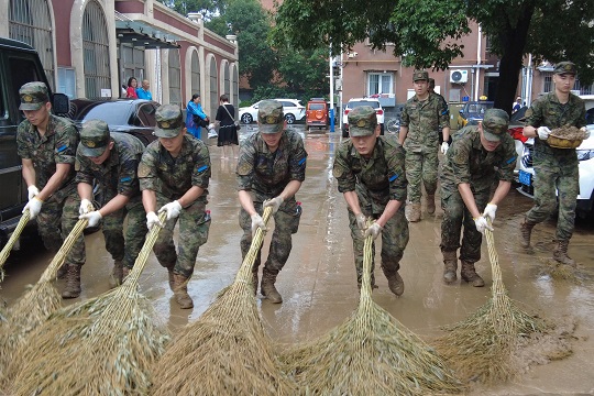 武警北京總隊(duì)機(jī)動第二支隊(duì)官兵星夜馳援北京市房山區(qū)石樓鎮(zhèn)夏村,救助轉(zhuǎn)移300余名群眾。之后,官兵在潭柘寺鎮(zhèn)魯家灘村魯坨路進(jìn)行道路清淤作業(yè),疏通受阻道路。