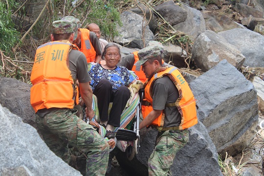 圖為8月4日,武警北京總隊(duì)官兵轉(zhuǎn)移被困群眾。本報(bào)通訊員 藺紅兵 楊洋 攝