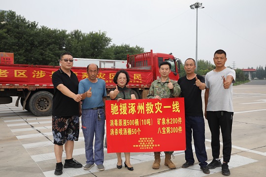 圖為10噸消毒原液從涉縣挺進涿州抗洪一線。