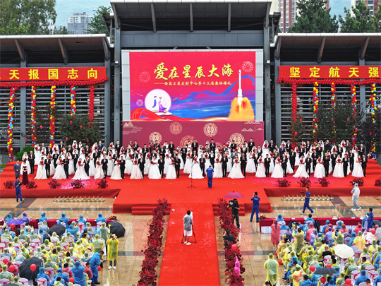 西昌衛(wèi)星發(fā)射中心“愛在星辰大?!奔w婚禮以中華民族傳統(tǒng)文化和中國航天精神為主旋律,婚禮分為舞樂鼓韻愛悠長、百年好合同心結(jié)、八方賓客喜滿堂、且喜今朝締良緣、吉日良辰賀新婚、蒼穹為證成佳偶、幸福交匯萬年長、追星逐月情意篤、惟愿情眷齊雙翼、情定航天共白頭、星辰大海錦繡程共十一個(gè)環(huán)節(jié),一系列詩意浪漫的活動(dòng)精彩紛呈、愛意綿綿。