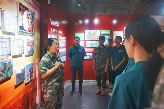 清華學子走進武警兵團總隊執(zhí)勤第五支隊營區(qū),換上軍裝參加軍事訓練,陪哨兵同站一班崗,觀摩特戰(zhàn)武器裝備展示……