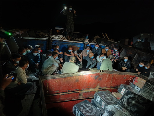 圖為2022年11月21日,廣東海警局抓獲嫌疑人30名。