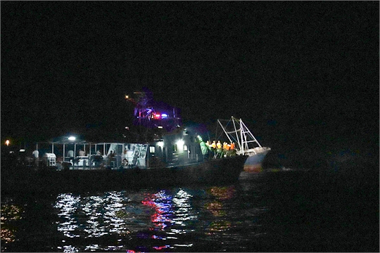 接警后,廣東海警局迅速指派廣東陽(yáng)江海警局執(zhí)法艇往事發(fā)海域展開(kāi)救援。23時(shí)許,海警執(zhí)法艇到達(dá)事發(fā)海域,由于該海域附近暗礁多且海況復(fù)雜,海警執(zhí)法艇通過(guò)AIS系統(tǒng)對(duì)海面進(jìn)行搜索后,最終發(fā)現(xiàn)遇險(xiǎn)船只。21日凌晨4時(shí)30分許,海警執(zhí)法艇將26名遇險(xiǎn)漁民轉(zhuǎn)移至陽(yáng)東工作站海警碼頭。