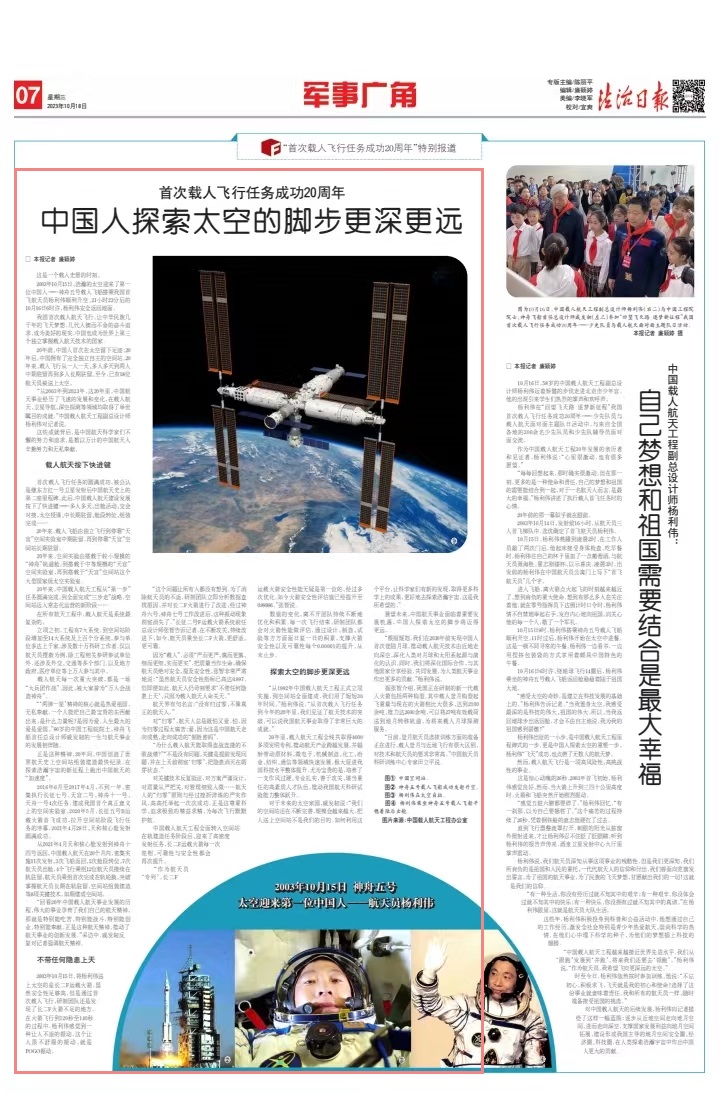 “從1992年中國(guó)載人航天工程正式立項(xiàng)實(shí)施,到空間站全面建成,我們用了短短30年時(shí)間?!睏罾麄フf(shuō),“從首次載人飛行任務(wù)到今年的20年里,我們見(jiàn)證了航天技術(shù)的突破,可以說(shuō)我國(guó)航天事業(yè)取得了非常巨大的成就?!?/p>