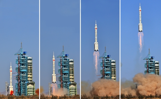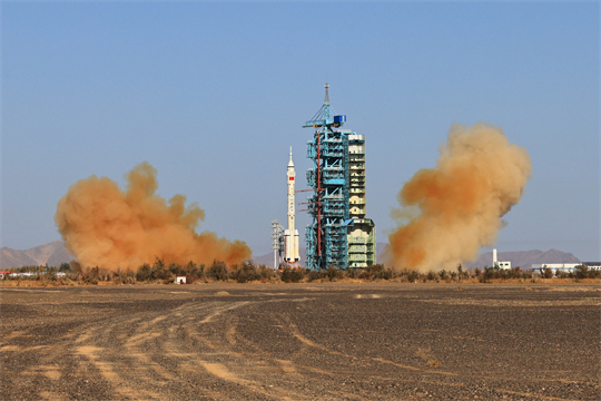 圖為10月26日,搭載神舟十七號(hào)載人飛船的長征二號(hào)F遙十七運(yùn)載火箭在酒泉衛(wèi)星發(fā)射中心發(fā)射成功。新華社記者 李剛 攝