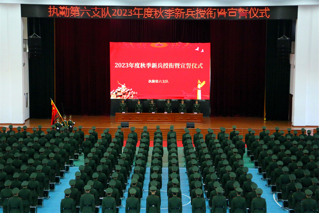 近日,武警北京總隊執(zhí)勤第六支隊新兵大隊舉行2023年度秋季入新兵授銜暨入伍宣誓儀式。經過三個多月淬火錘煉,新兵們褪去青澀收獲成長,迎來屬于他們的“成人禮”。