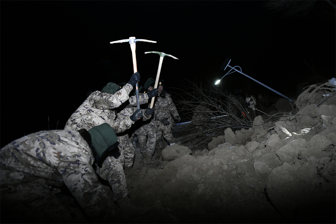 武警官兵不畏嚴(yán)寒、不怕艱苦,克服種種困難,采取摩托化和徒步行軍的方式,第一時間趕到震中區(qū)域,立即投入搜救傷員、搶修道路、搬運物資等任務(wù)。截至12月19日7時30分,共成功搜救轉(zhuǎn)移群眾45名,找到遇難者尸體8具。目前,武警官兵仍奮戰(zhàn)在搶險救援一線。