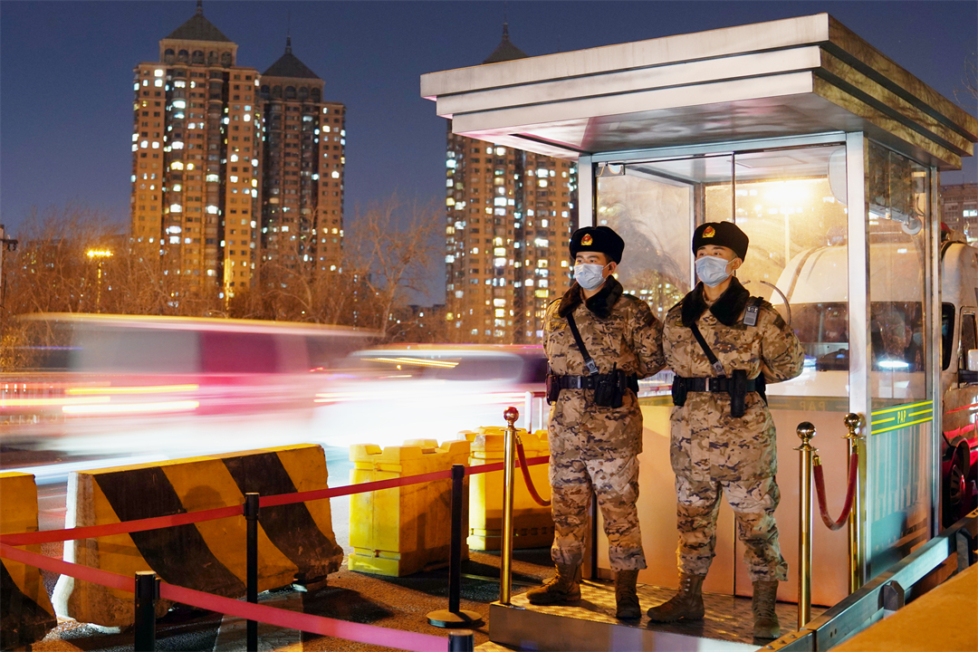 圖為北京西站北廣場哨兵正在夜間執(zhí)勤。