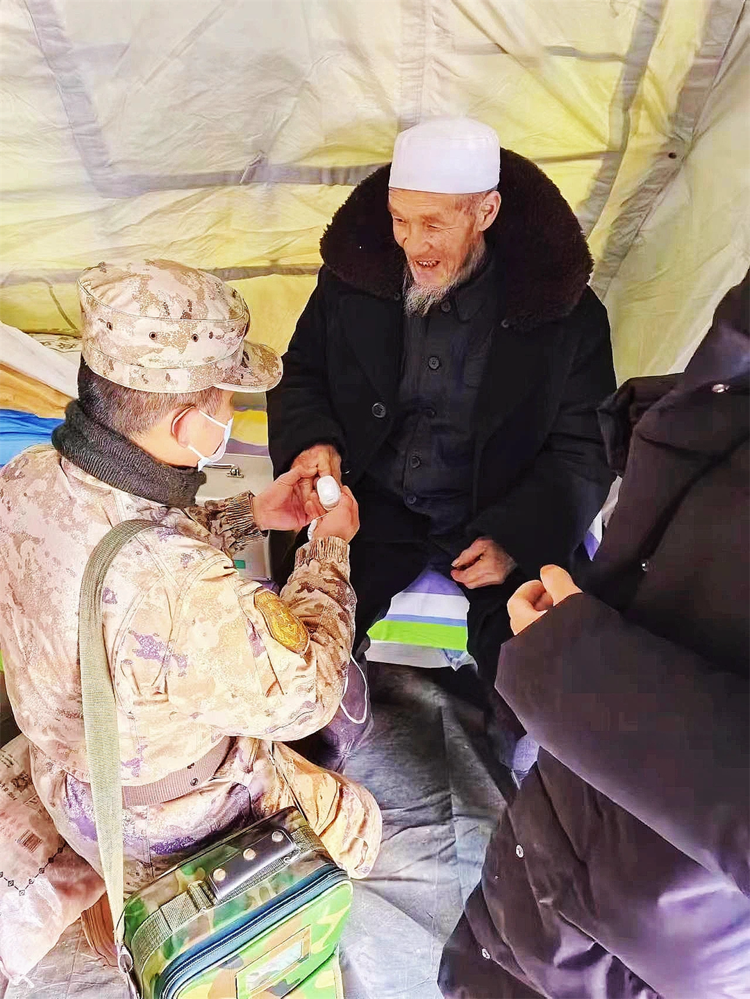 第940醫(yī)院醫(yī)療隊(duì)分赴積石山縣柳溝鄉(xiāng)、石塬鎮(zhèn)、劉集鄉(xiāng)和大河家鎮(zhèn),為受災(zāi)群眾查體診療、送醫(yī)送藥。他們還成立心理服務(wù)隊(duì),在提供健康查體、送醫(yī)送藥等服務(wù)基礎(chǔ)上,為有需要的受災(zāi)群眾開展一對一心理疏導(dǎo)。為解決偏遠(yuǎn)村莊受災(zāi)群眾就診難的問題,應(yīng)急醫(yī)療分隊(duì)成立黨員先鋒模范醫(yī)療組,翻山越嶺、走村入戶,持續(xù)開展送醫(yī)送診服務(wù)。