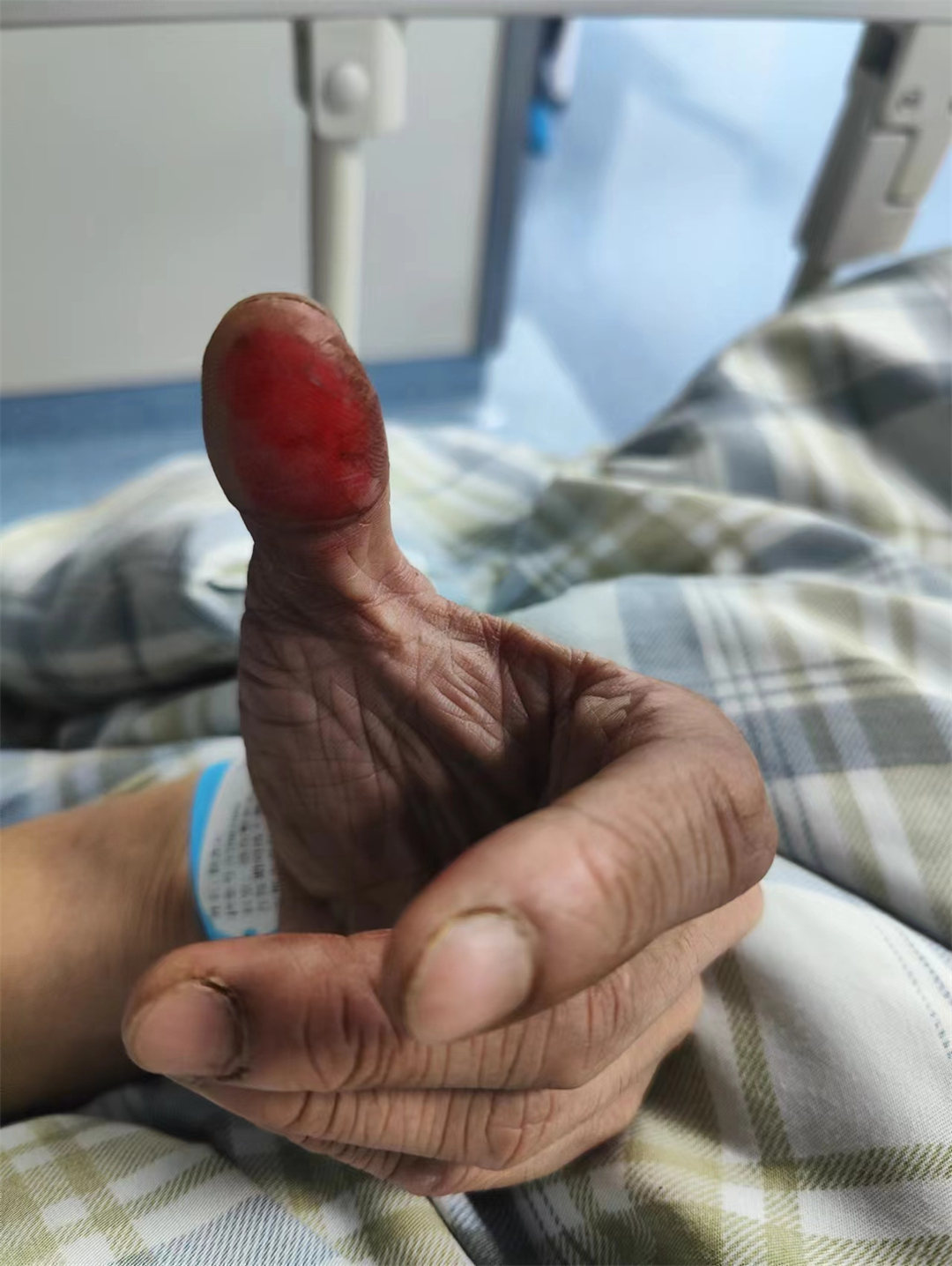 圖為陳凱松救火時被燙傷的手指。