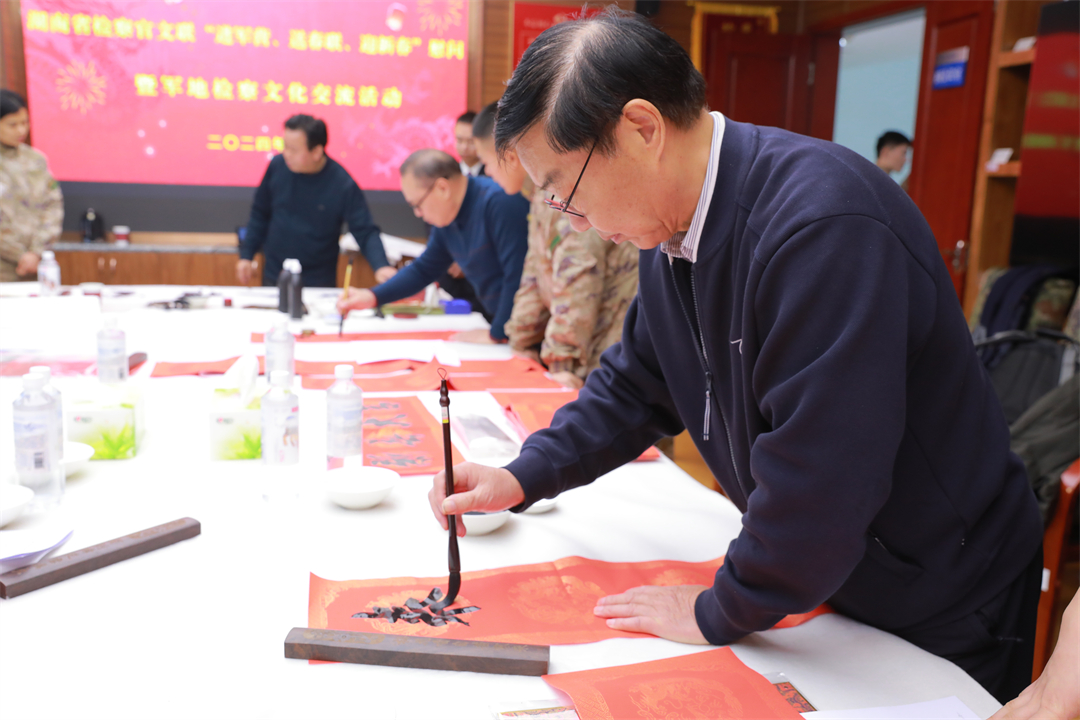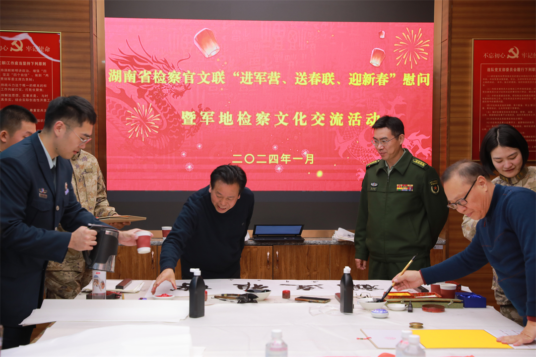 近日,解放軍長(zhǎng)沙軍事檢察院攜手湖南省人民檢察院政治部、湖南省檢察官文聯(lián)開展“進(jìn)軍營(yíng)、送春聯(lián)、迎新春”慰問暨軍地檢察文化交流活動(dòng)。