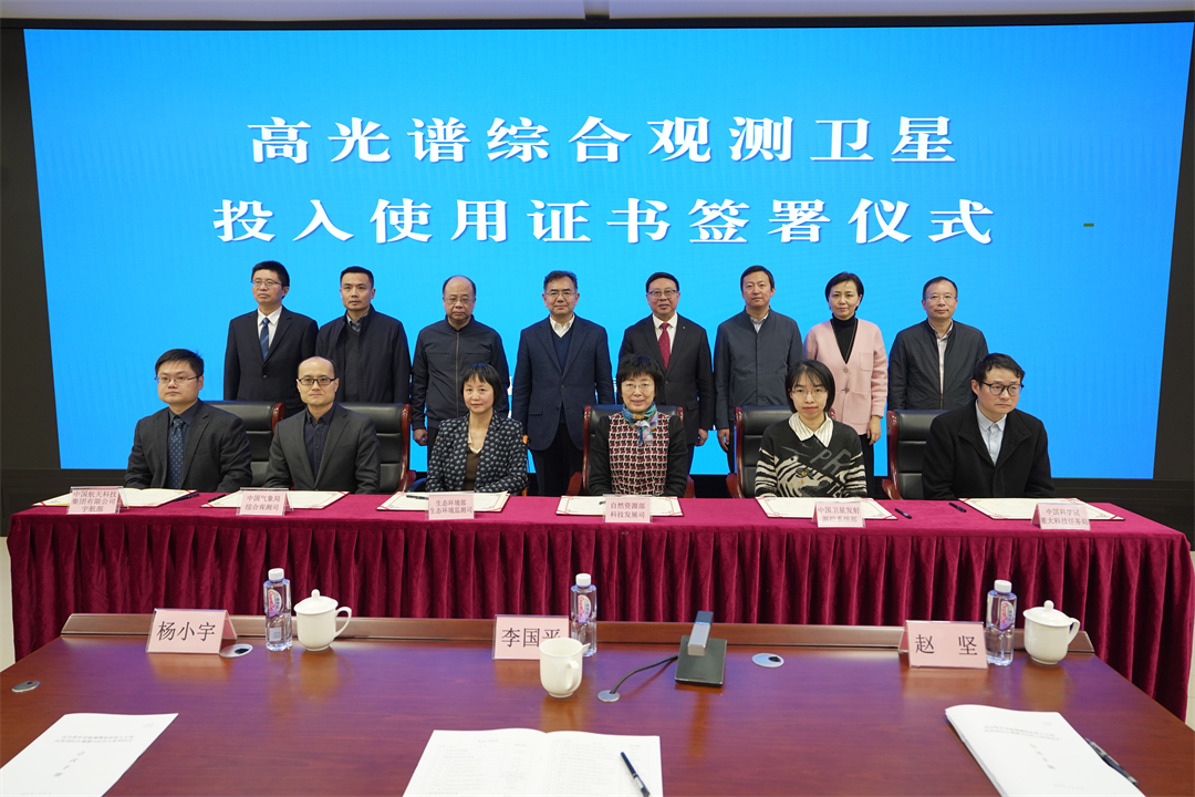 1月23日,國家航天局在京舉辦高光譜綜合觀測衛(wèi)星投入使用儀式。國家航天局總工程師李國平出席儀式。生態(tài)環(huán)境部、自然資源部、中國氣象局、中國航天科技集團有限公司等單位代表出席儀式并共同簽署了高光譜綜合觀測衛(wèi)星投入使用證書。