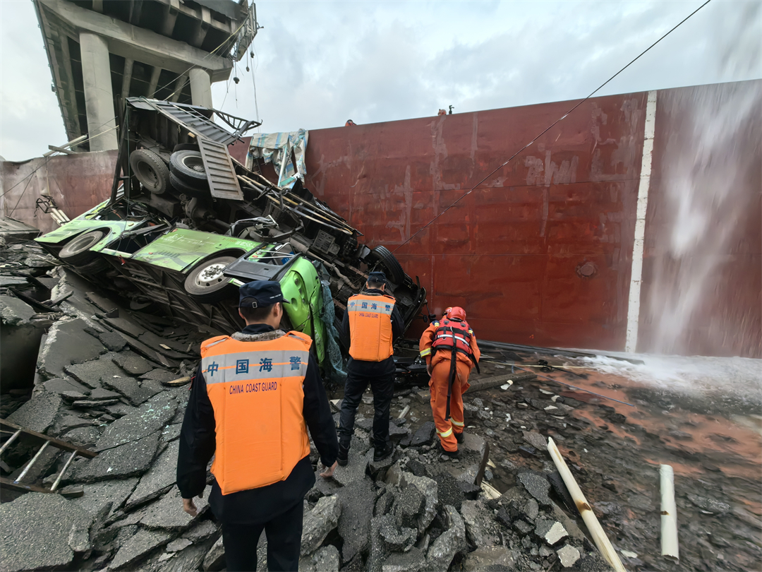 2月22日6時(shí)許,廣州海警局接報(bào)警,南沙瀝心沙大橋被撞,橋體斷裂,橋上有車輛落水,情況危急請(qǐng)求救援。接警后,廣州海警局立即啟動(dòng)海上應(yīng)急救援預(yù)案,指派21523、21141等執(zhí)法艇第一時(shí)間到達(dá)事發(fā)海域,聯(lián)合消防、公安、海事等單位開展緊急救援。