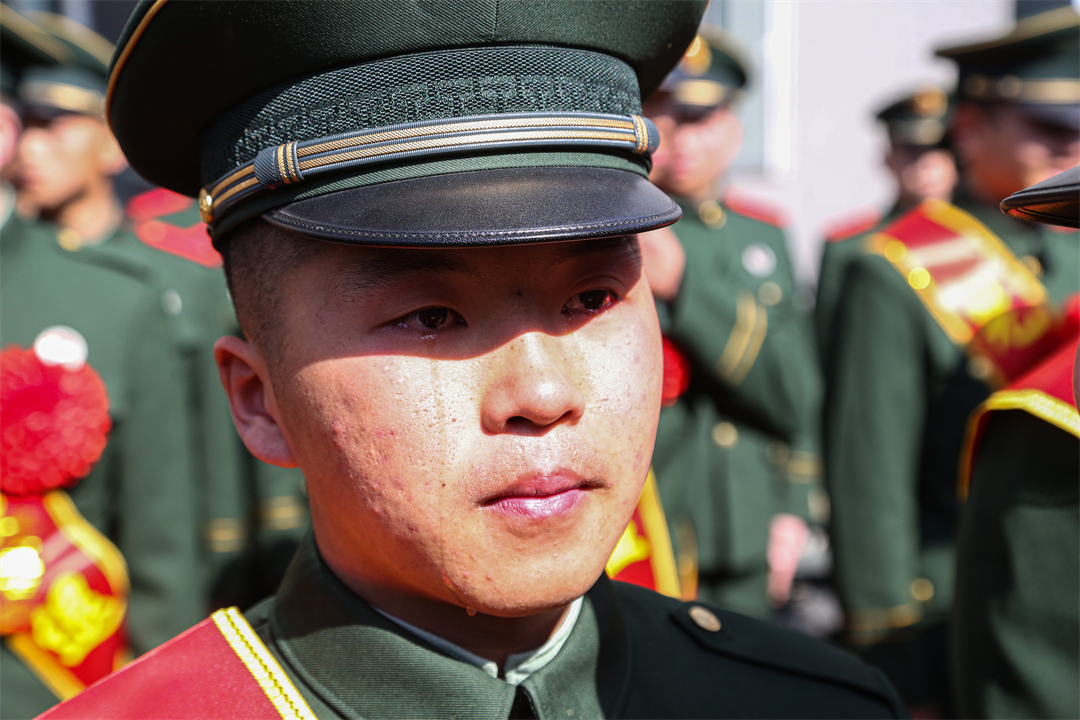 圖為卸下軍銜后退役老兵熱淚盈眶。尚云卓 攝