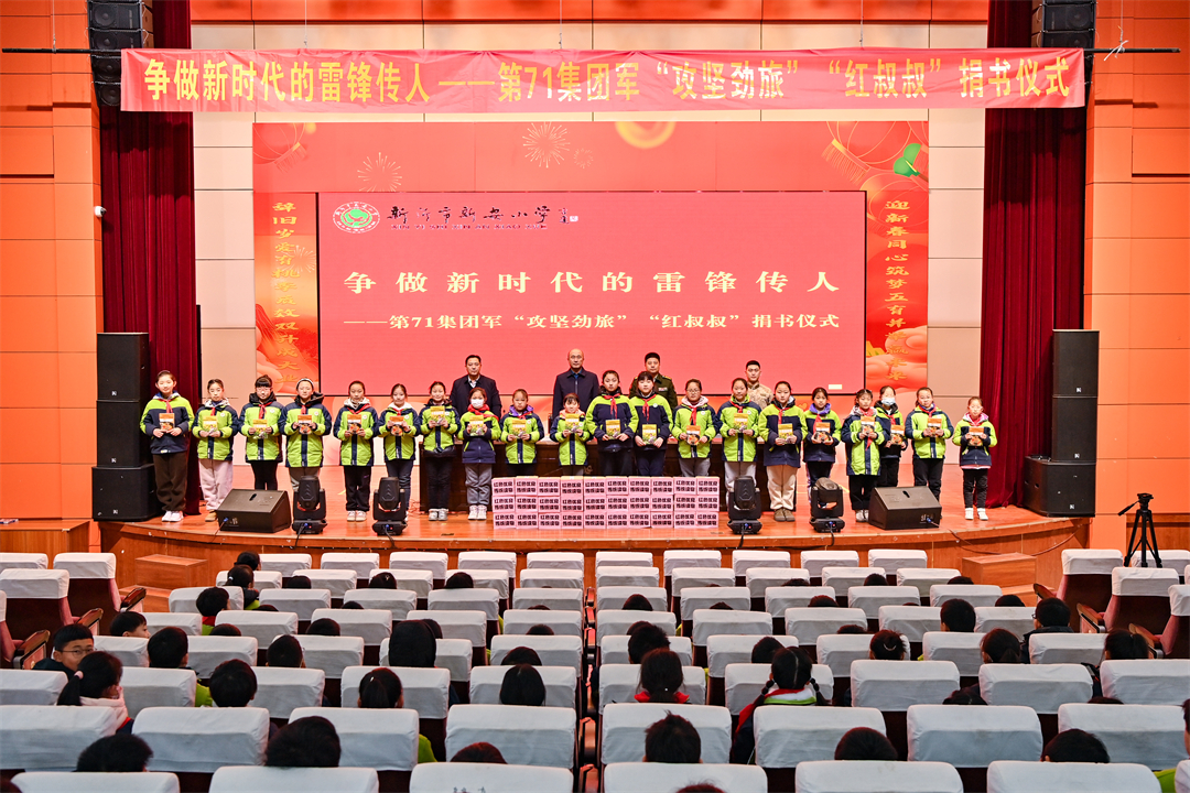 圖為第71集團軍“攻堅勁旅”組織官兵走進駐地學校,開展捐贈紅色書籍活動。