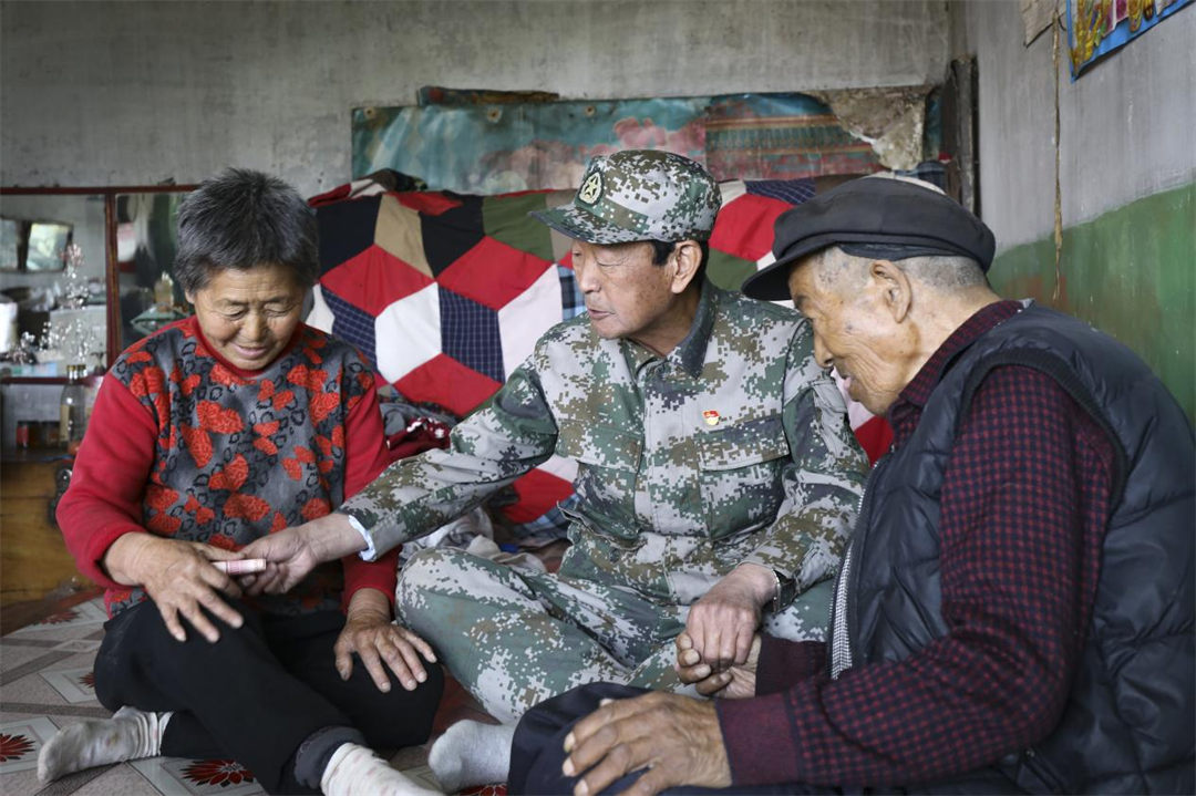 圖為逢年過節(jié),張連印看望村里的貧困戶。
