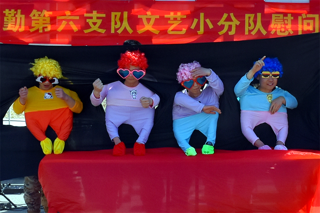 圖為文藝小分隊來到任務(wù)一線慰問表演。