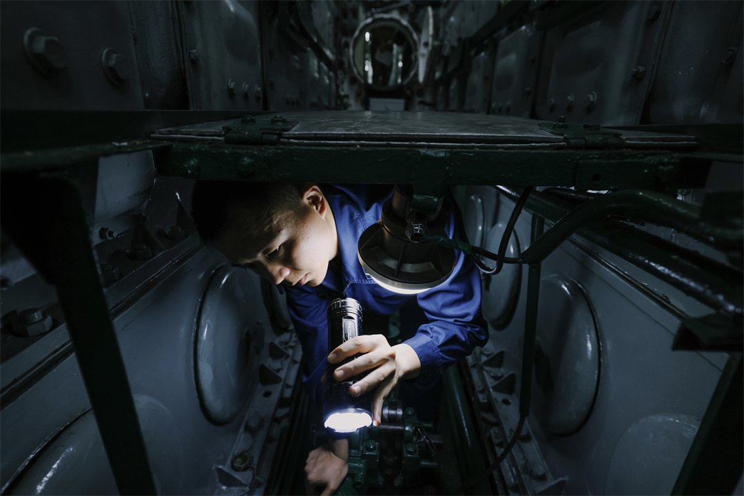 此前,某潛艇在任務途中突發(fā)柴油機某部位漏水險情,如果處理不當,將導致海水倒灌,后果不堪設想。艙室負責人、柴油機技師黃龍琪從未經(jīng)歷過此類情況,他趕忙計算參數(shù),進行臨時處理。最終,他們克服困難,繼續(xù)在大海航行12天后,圓滿完成任務返航。