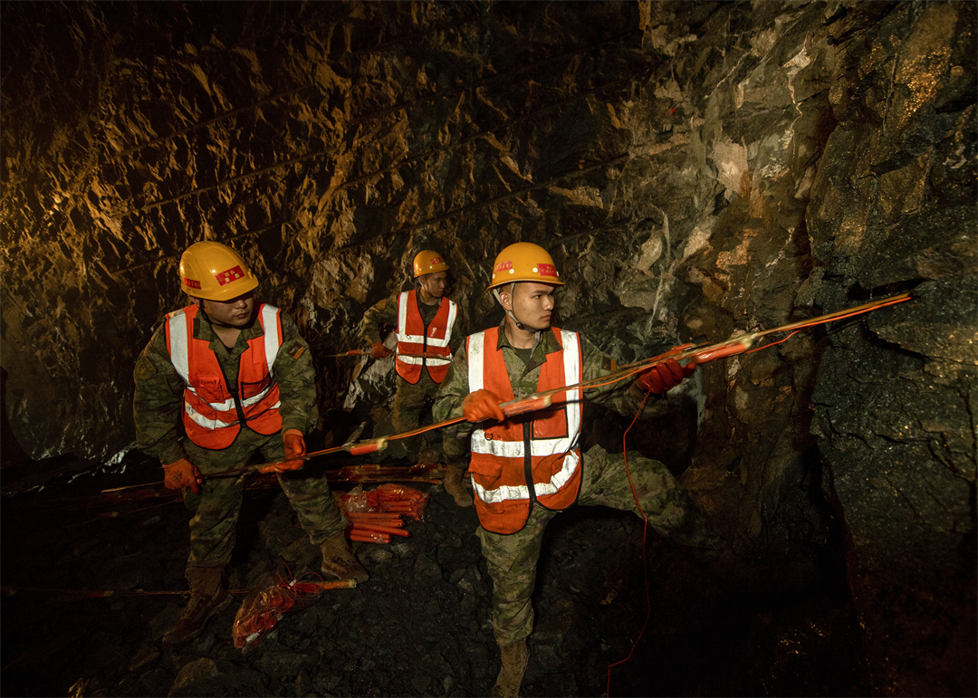 如另外選址,不僅耗資大而且影響工期。指揮長、分隊長站了出來,黨員突擊隊站了出來,硬是把近千根錨桿嵌入巖層深處,用一根根鋼材木頭給工程安上大梁。最終降伏“攔路虎”,官兵們緊緊相擁,喜極而泣。