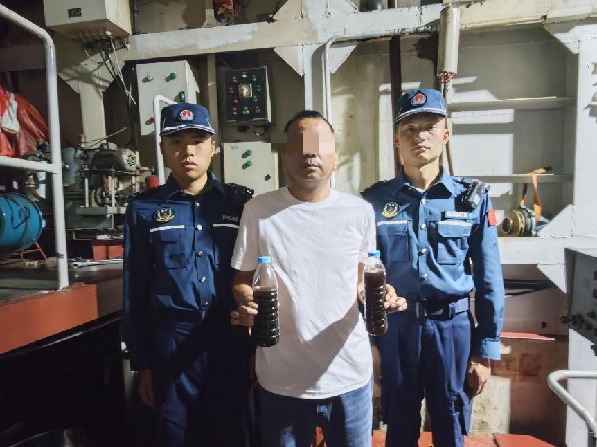 5月6日,廣東海警局接通報稱,在惠州海域發(fā)現(xiàn)一艘非法使用“紅油”貨輪即將進入海域轄區(qū)。該局迅速派遣執(zhí)法艇查緝,并于當日15時30分許在三門島附近海域?qū)⑵浣赝?。?jīng)查,船上共6人,海警執(zhí)法員在該船油柜及主機處均發(fā)現(xiàn)疑似“紅油”燃料油,該船船員承認使用并存儲“紅油”約3噸,且無法提供相關合法手續(xù)和憑證。