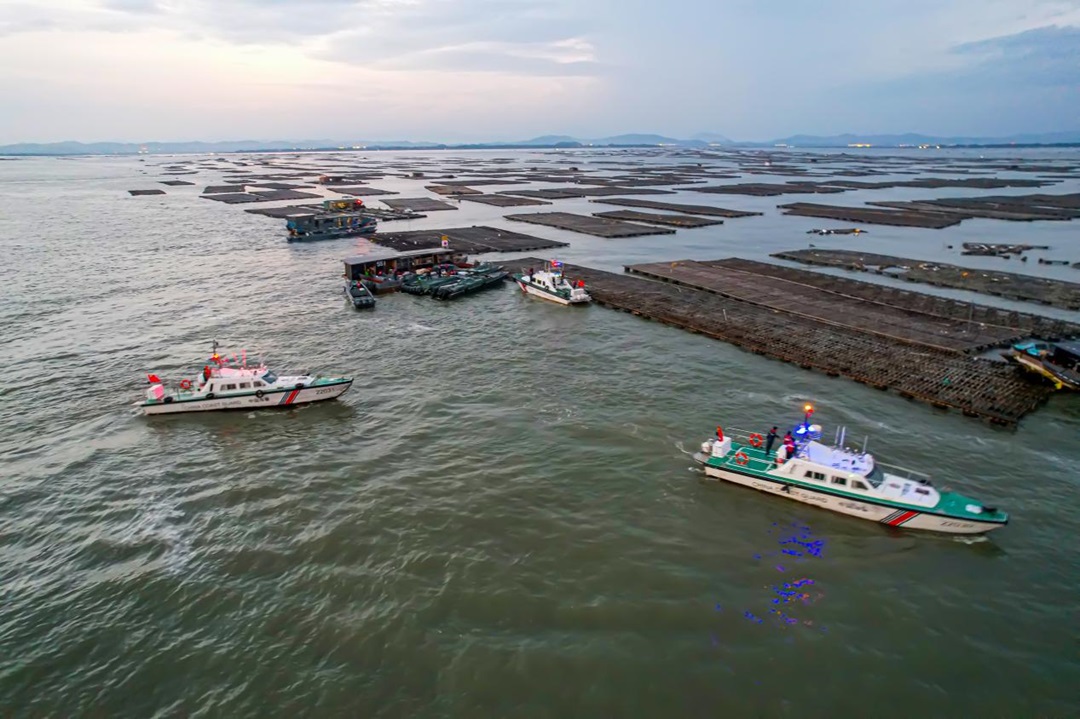 圖為海警執(zhí)法艇查緝走私現(xiàn)場。
