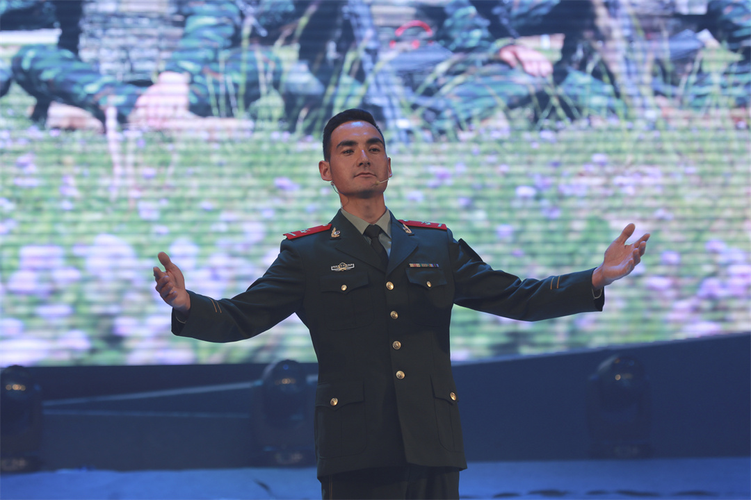 圖為演唱歌曲《戰(zhàn)友戰(zhàn)友親如兄弟》。