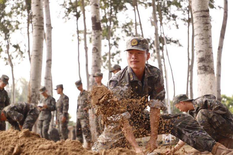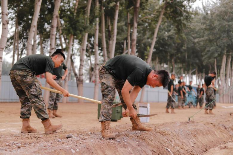 抵達(dá)駐訓(xùn)場后,各單位迅速展開物資卸載、土地平整、通水通電、帳篷搭建等工作。