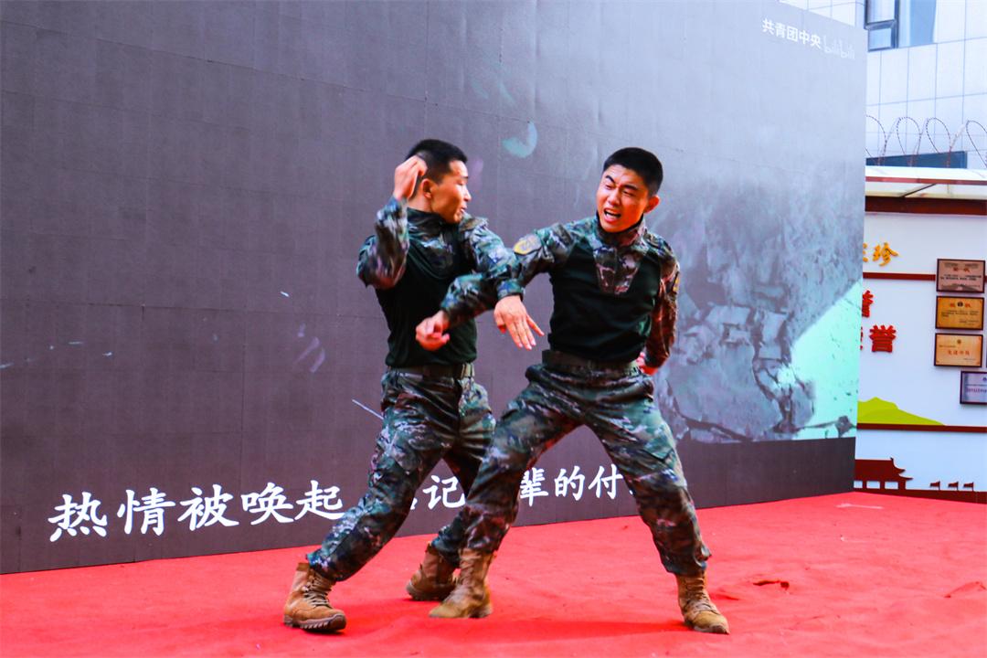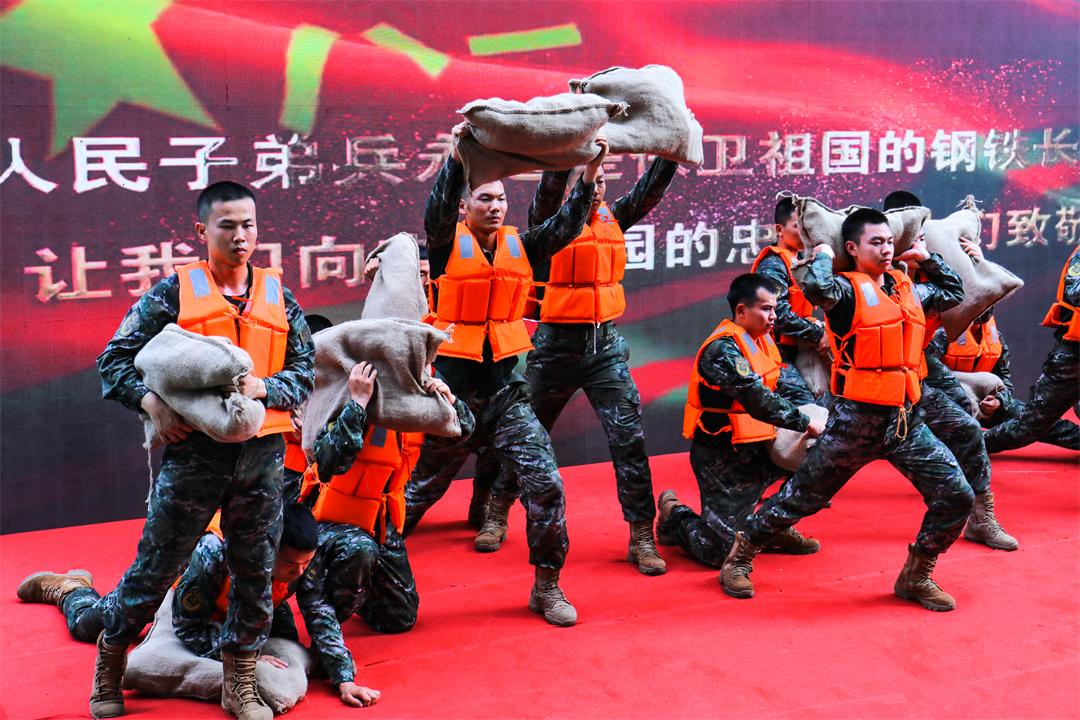 《擒敵術(shù)》表演拉開演出序幕,官兵們熟練的動(dòng)作、默契的配合點(diǎn)燃全場(chǎng)氣氛。由官兵自導(dǎo)自演的舞蹈《眾志成城》,真實(shí)再現(xiàn)了大家投身抗洪搶險(xiǎn)任務(wù)時(shí)的場(chǎng)景,贏得全場(chǎng)熱烈掌聲。整場(chǎng)演出精彩紛呈,二胡獨(dú)奏、相聲、快板,一個(gè)個(gè)節(jié)目高潮迭起,現(xiàn)場(chǎng)掌聲經(jīng)久不息,展現(xiàn)了“軍愛民、民擁軍,人民軍隊(duì)忠于黨”的永恒主題,給官兵帶來(lái)極大精神鼓舞。大家一致表示,一定立足本職崗位,苦練軍事技能,發(fā)揚(yáng)優(yōu)良傳統(tǒng),圓滿完成各項(xiàng)任務(wù),為推動(dòng)軍民融合高質(zhì)量發(fā)展作出自己的貢獻(xiàn)。演出在合唱《團(tuán)結(jié)就是力量》的歌聲中落下帷幕。