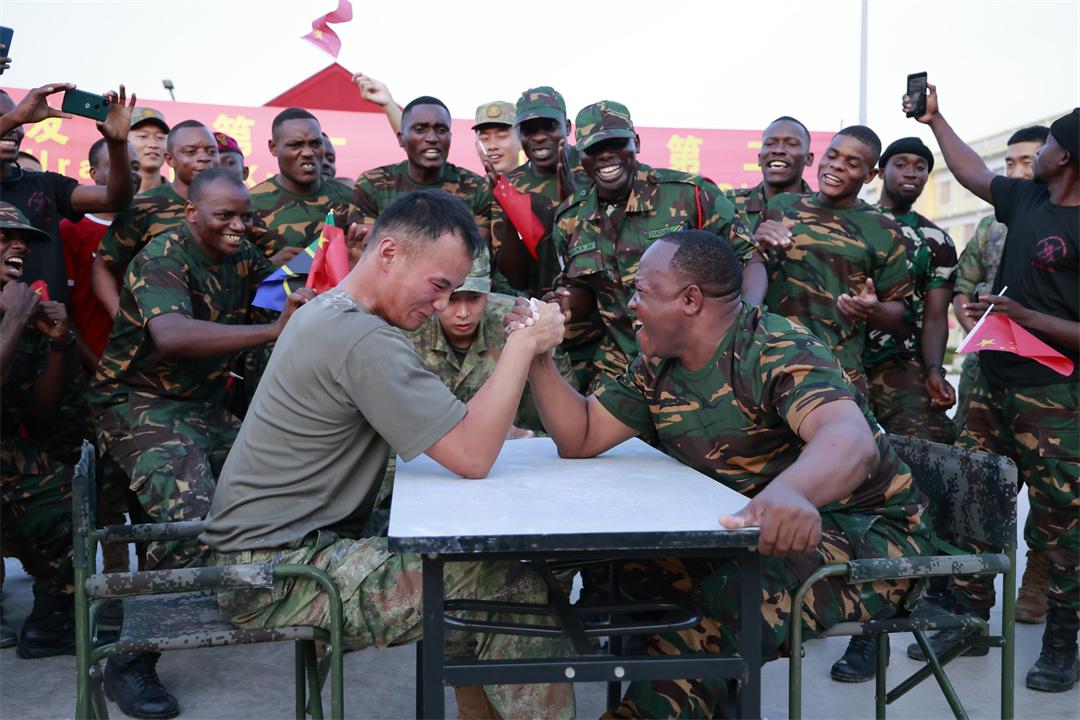 比賽結(jié)束后,雙方領(lǐng)導(dǎo)為優(yōu)勝團(tuán)隊(duì)合影留念,兩國官兵遲遲不愿離場(chǎng),又自發(fā)開展了軍體拳、捕俘拳等交流活動(dòng)。大家仔細(xì)觀看,躍躍欲試,歡呼聲和加油聲此起彼伏,一浪蓋過一浪。中方官兵現(xiàn)場(chǎng)主動(dòng)教學(xué),將中華優(yōu)秀傳統(tǒng)文化介紹給坦方友人,大家在友好交流中不斷深化了解,在歡聲笑語間感受中華文化的獨(dú)特魅力。