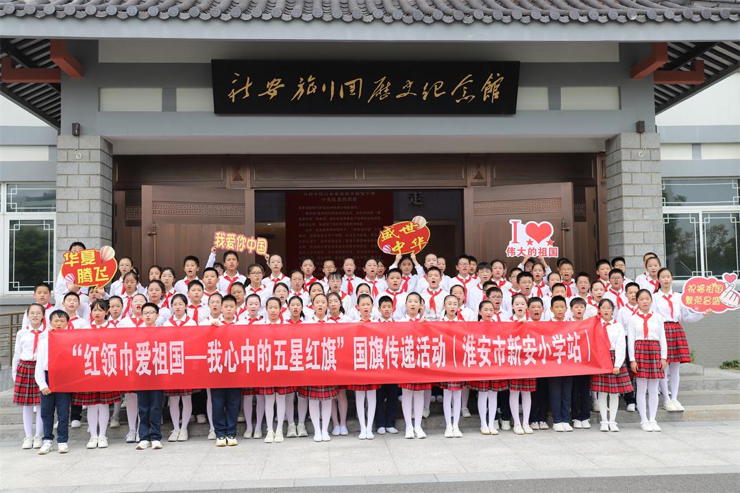 8月21日上午,“紅領巾愛祖國——我心中的五星紅旗”國旗傳遞活動來到江蘇省淮安市,在淮安市新安小學傳遞。少先隊校外輔導員、消防員代表陳新寬,淮安市、區(qū)少先隊總輔導員,新安小學少先隊大隊及中隊輔導員代表,以及新老五(8)中隊全體隊員逾百人共同參與了本次傳遞活動。