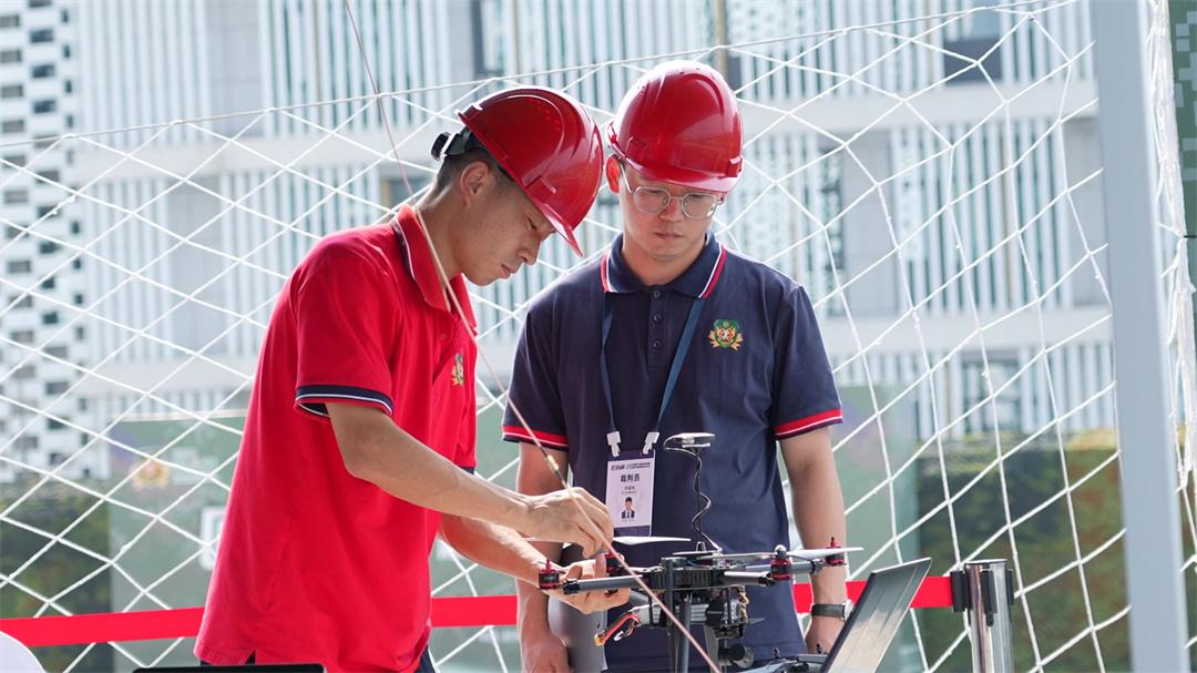 圖為無人機裝調(diào)檢修工比賽進行中。