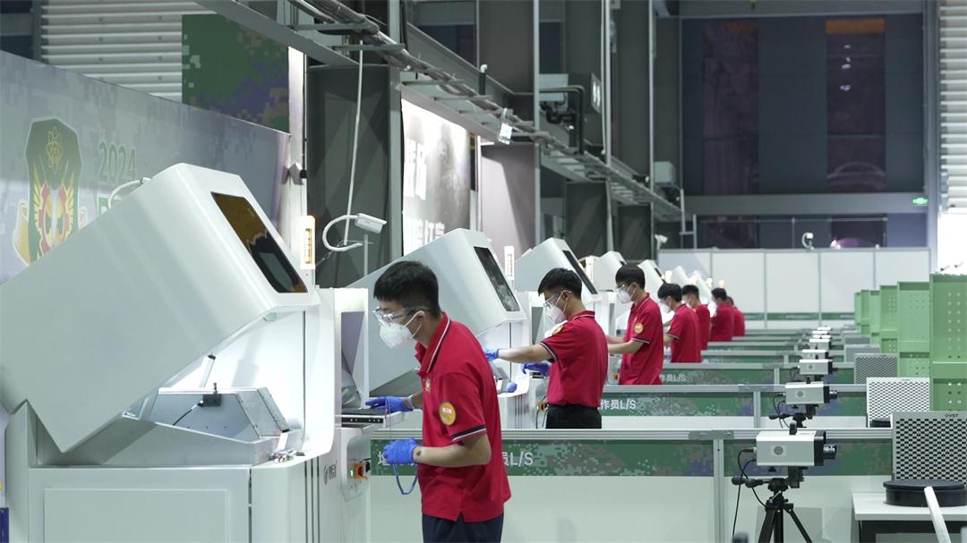 圖為電子專用設(shè)備裝調(diào)工比賽進行中。
