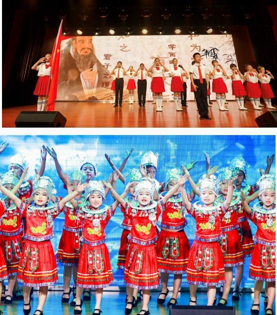 室內(nèi)舞臺(tái)上,精彩節(jié)目輪番上演,讓人目不暇接。詩(shī)歌朗誦《中國(guó)話(huà)》鏗鏘有力,京劇《貴妃醉酒》華麗細(xì)膩,女生表演唱《阿妹的苗寨》歡快動(dòng)人……每一個(gè)節(jié)目都是孩子們用心血和熱情澆灌的碩果,他們用自己的方式向祖國(guó)母親獻(xiàn)上最真摯的祝福。