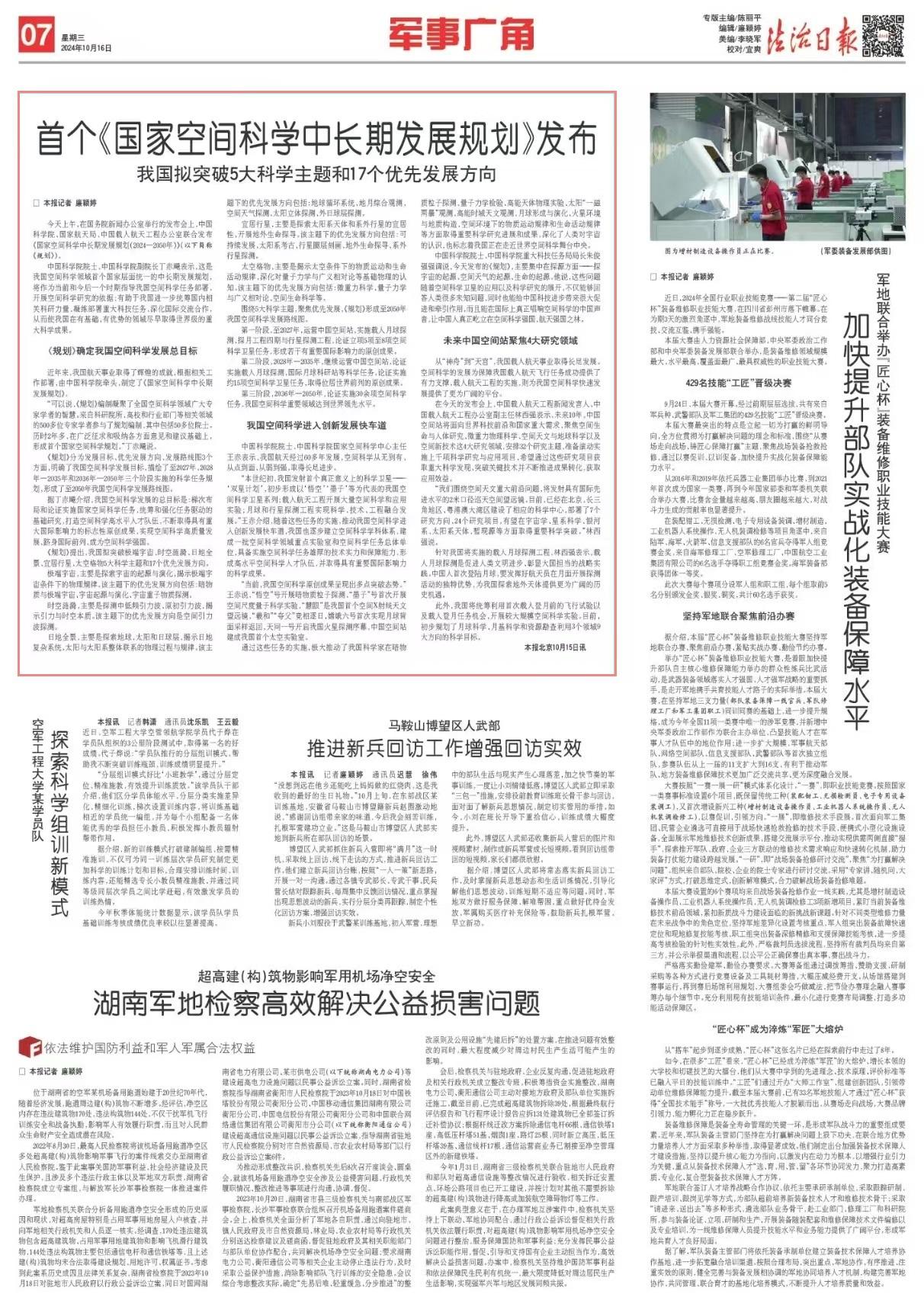 “當(dāng)前,我國(guó)空間科學(xué)原創(chuàng)成果呈現(xiàn)出多點(diǎn)突破態(tài)勢(shì)?!蓖醭嗾f(shuō),“悟空”號(hào)開展暗物質(zhì)粒子探測(cè)、“墨子”號(hào)首次開展空間尺度量子科學(xué)實(shí)驗(yàn),“慧眼”是我國(guó)首個(gè)空間X射線天文望遠(yuǎn)鏡,“羲和”“夸父”競(jìng)相逐日,嫦娥六號(hào)首次實(shí)現(xiàn)月球背面采樣返回,天問(wèn)一號(hào)開啟我國(guó)火星探測(cè)序幕,中國(guó)空間站建成我國(guó)首個(gè)太空實(shí)驗(yàn)室。