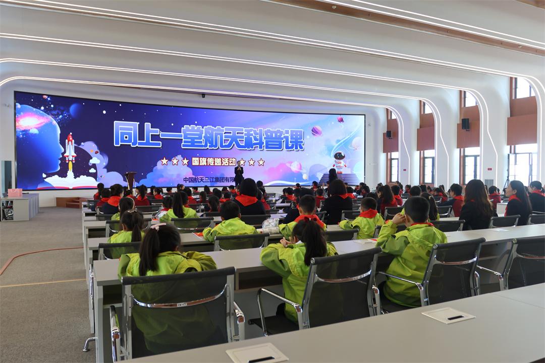 升旗儀式結(jié)束后,來自航天科工火箭技術(shù)有限公司的青年科技工作者唐詩,為少先隊員們上了一堂科普課,從載人航天和可回收火箭等熱門話題引入,講解了快舟火箭的誕生和發(fā)展,介紹了東方紅、北斗、嫦娥、天宮等國家重大航天項目。圍繞“紅領(lǐng)巾愛祖國”主題,少先隊員們現(xiàn)場進(jìn)行熱烈互動和交流。