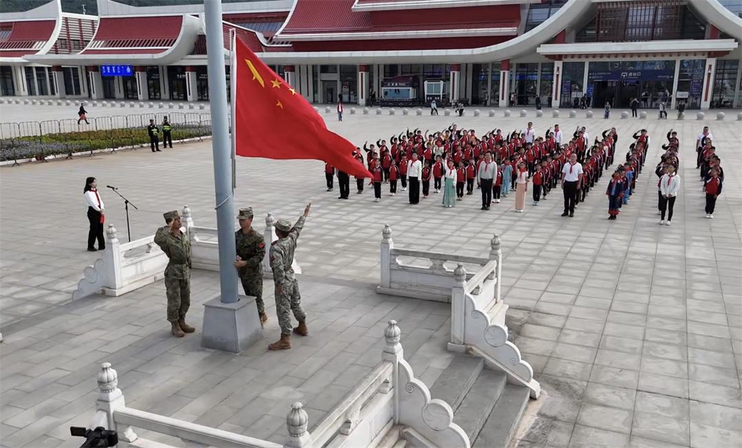 11月12日,“紅領(lǐng)巾愛祖國——我心中的五星紅旗”國旗傳遞活動,在中老鐵路磨憨站舉行。