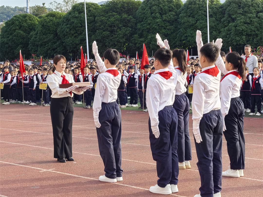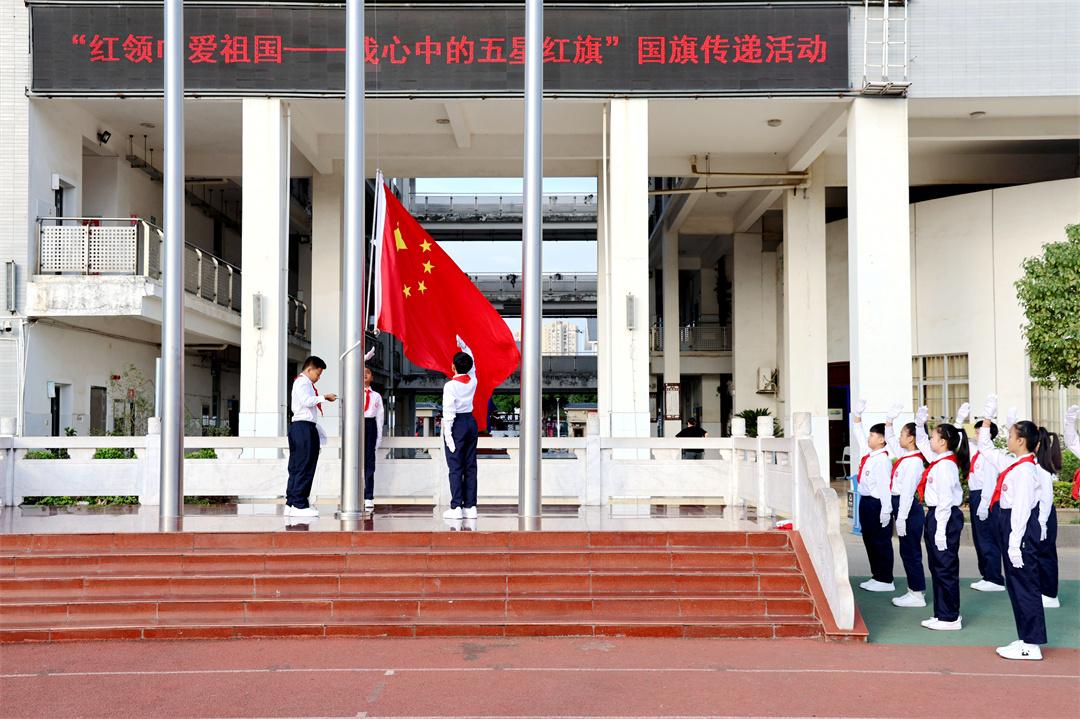 活動(dòng)當(dāng)天,隨神舟十八號(hào)載人飛船進(jìn)入中國(guó)空間站并隨神舟十七號(hào)載人飛船返回地面的國(guó)旗在百色市第一小學(xué)進(jìn)行傳遞。活動(dòng)中,廣西少先隊(duì)總輔導(dǎo)員代表將國(guó)旗傳遞到百色市少先隊(duì)員代表手中。少先隊(duì)員現(xiàn)場(chǎng)展示國(guó)旗后舉行了莊嚴(yán)的升國(guó)旗儀式。少先隊(duì)員代表在國(guó)旗下表達(dá)了對(duì)祖國(guó)的熱愛和對(duì)中國(guó)航天事業(yè)的向往,表示將把這份熱愛和期許化作實(shí)際行動(dòng),傳承紅色基因,刻苦學(xué)習(xí)、不斷進(jìn)取,努力成長(zhǎng)為堪當(dāng)民族復(fù)興重任的時(shí)代新人。