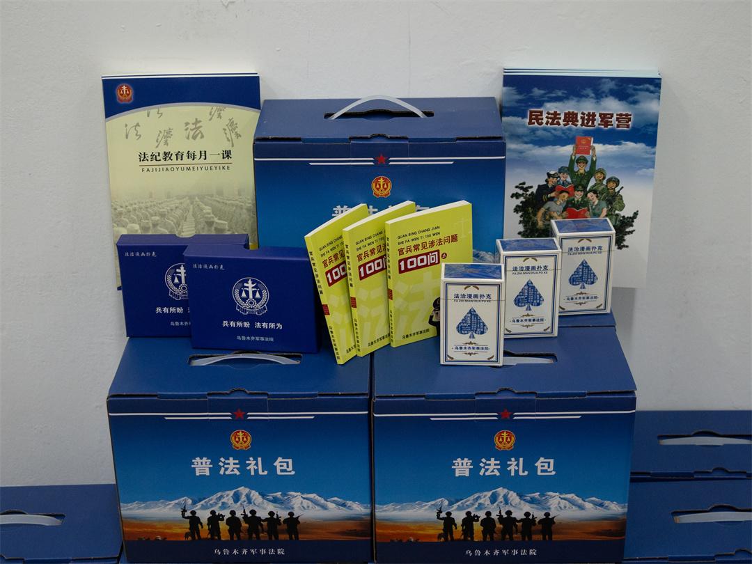 圖為烏魯木齊軍事法院為部隊(duì)官兵精心設(shè)計(jì)的普法大禮包。鐘子夜 攝