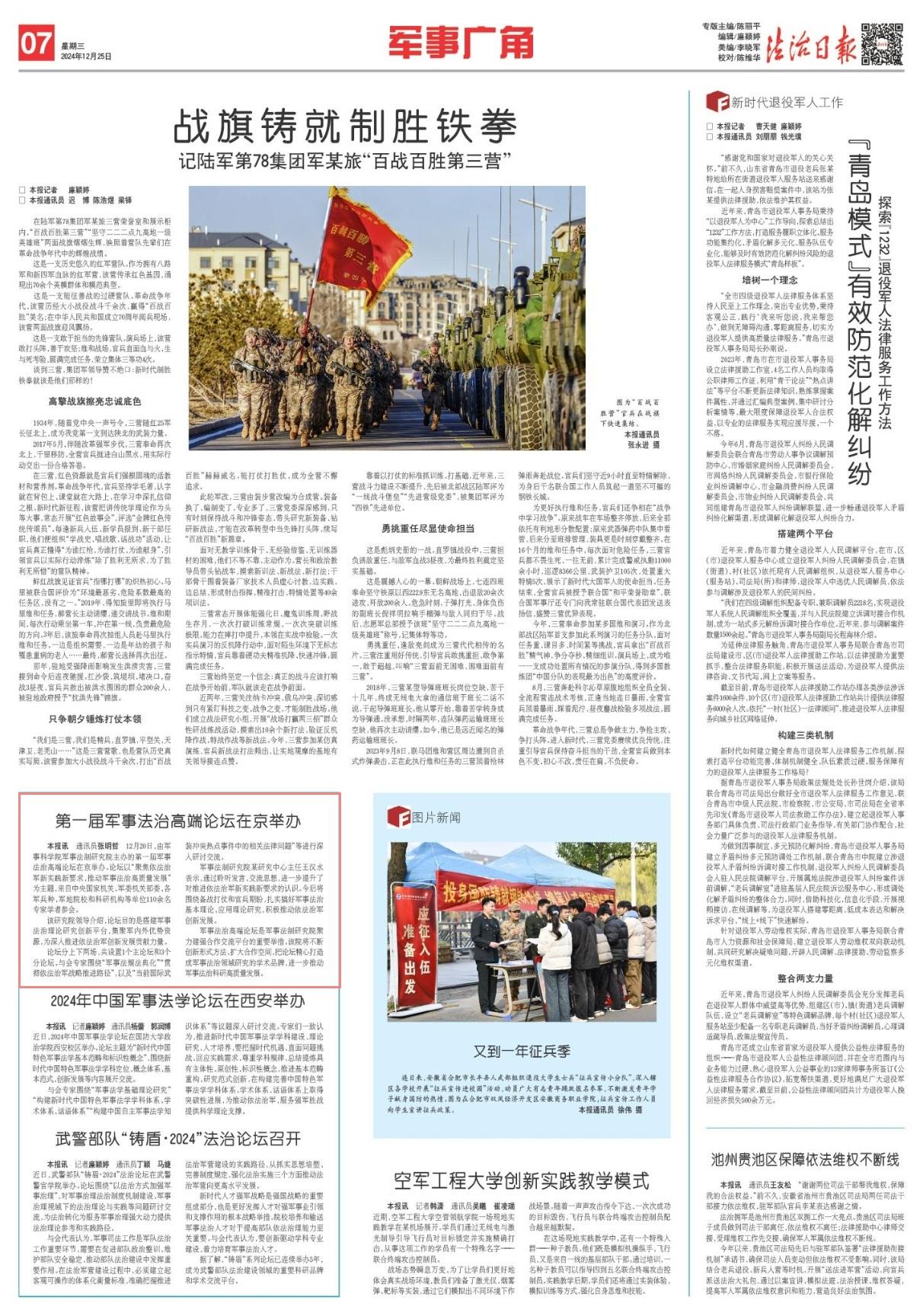 12月20日,由軍事科學院軍事法制研究院主辦的第一屆軍事法治高端論壇在京舉辦。論壇以“聚焦依法治軍新實踐新要求,推動軍事法治高質(zhì)量發(fā)展”為主題,來自中央國家機關、軍委機關部委、各軍兵種、軍地院校和科研機構(gòu)等單位110余名專家學者參會。