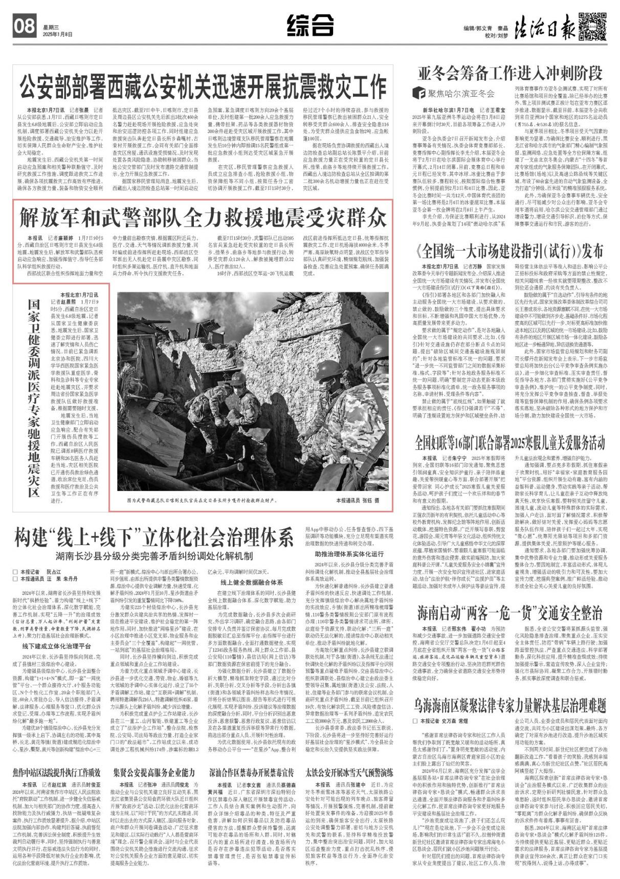 1月7日9時(shí)5分,西藏自治區(qū)日喀則市定日縣發(fā)生6.8級(jí)地震。地震發(fā)生后,解放軍和武警部隊(duì)迅疾啟動(dòng)應(yīng)急響應(yīng),加強(qiáng)指揮值守,指導(dǎo)任務(wù)部隊(duì)科學(xué)組織救援行動(dòng)。